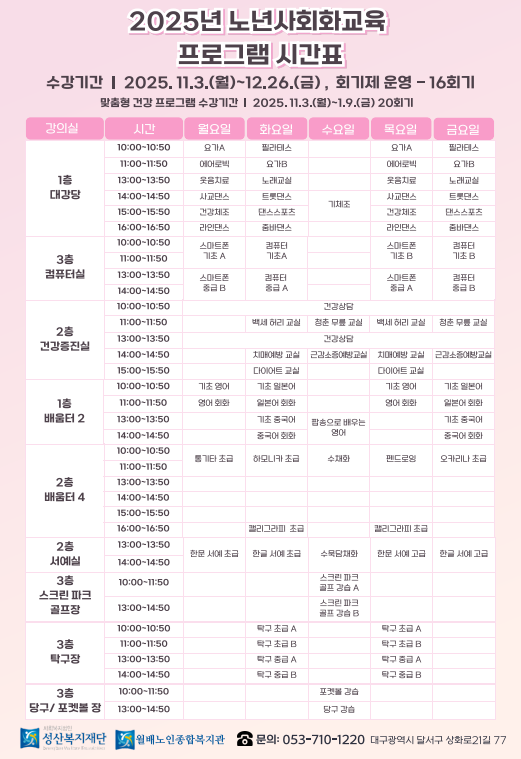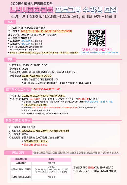 2025년 노년사회화교육 프로그램 수강생 모집 안내