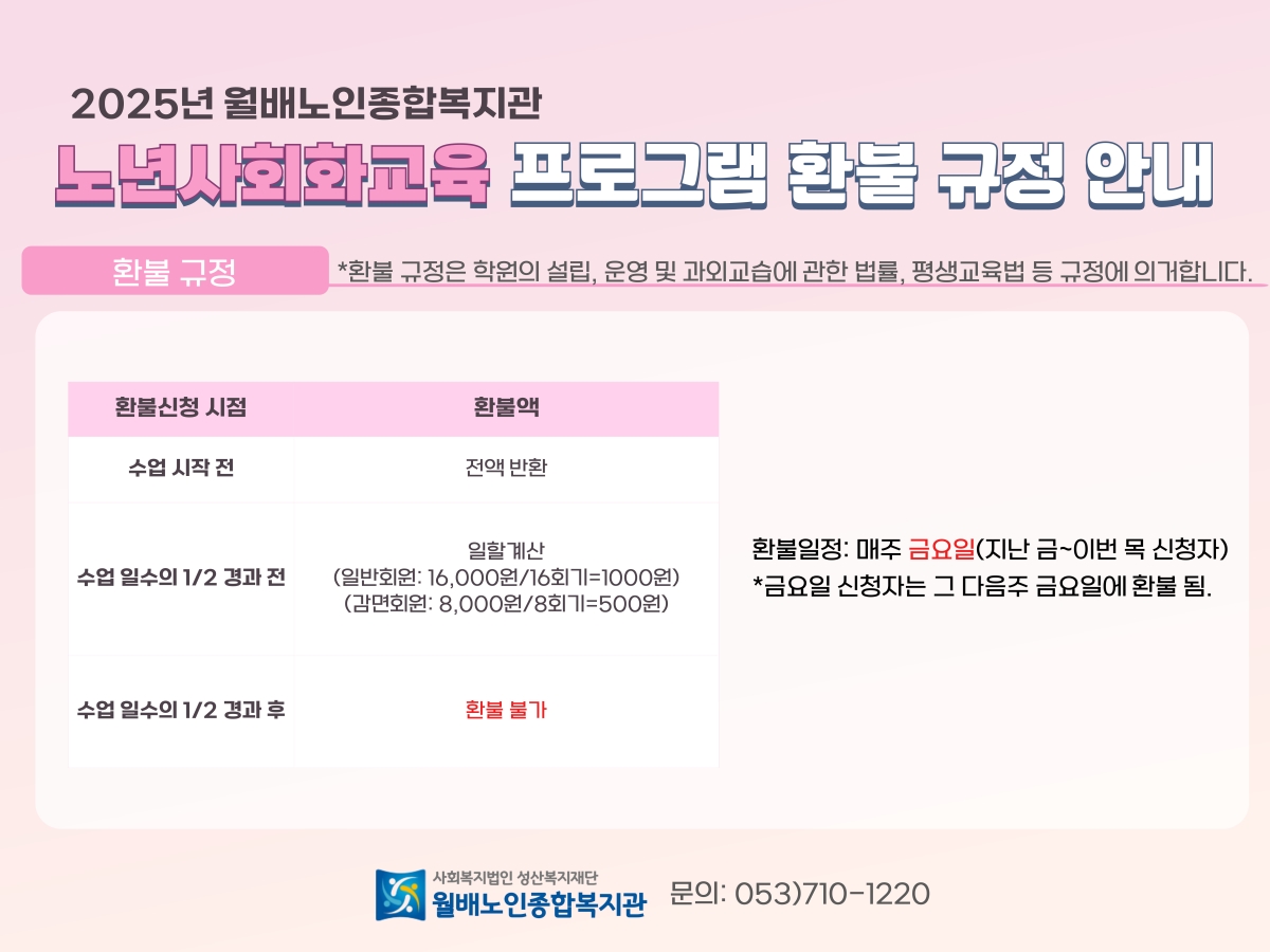 2025년 노년사회화교육 환불 규정 안내