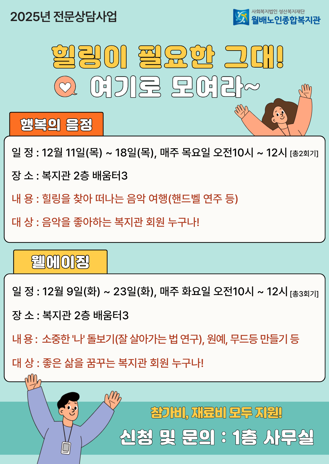 2025년 전문상담사업(행복의 음정, 웰에이징) 참여자 모집